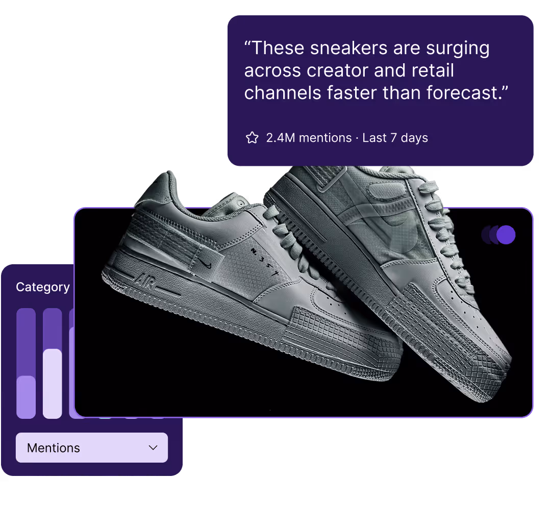 In 2026, retail trends and product reviews are driven by video-first platforms like TikTok and YouTube. But, up to 75% of brand mentions are spoken rather than typed in captions or tags. Our Multimodal AI uses ASR (Automatic Speech Recognition) to analyze unboxing videos and spoken reviews in real-time. Logo Detection identifies your products even when a creator forgets to tag your brand, ensuring marketing teams don't miss high-velocity viral trends that text-only tools simply cannot see.