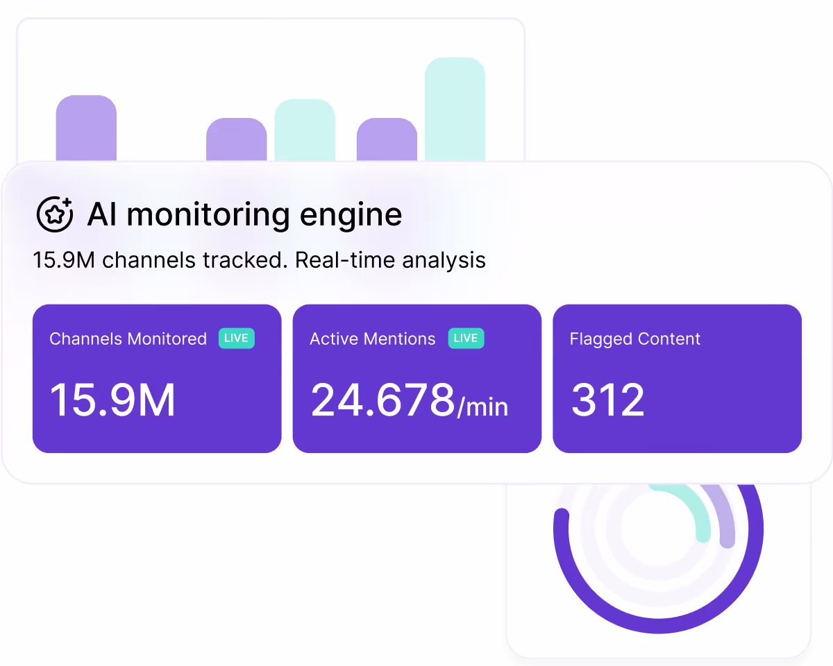 Optical Character Recognition (OCR) extracts hidden text and links embedded within images and video frames, while logo detection identifies visual brand exposure (even in the background of video!), capturing your brand when your product is seen, not just typed.